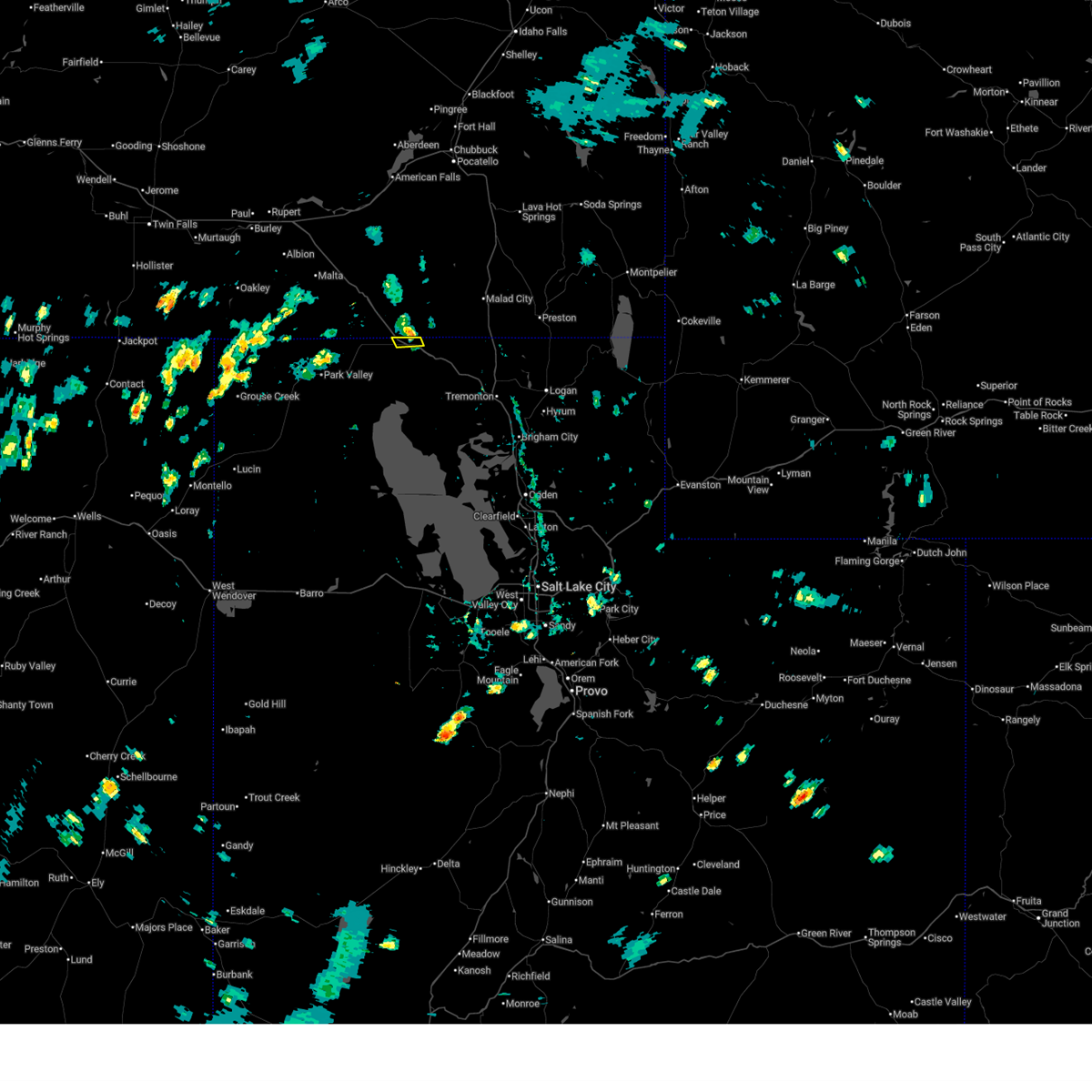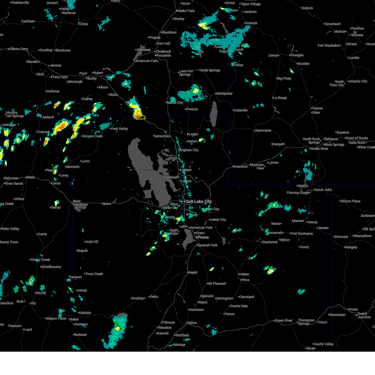 At 343 pm mdt, doppler radar indicated a severe thunderstorm capable of producing quarter size hail and damaging winds in excess of 60 mph. this storm was located near snowville, moving east at 25 mph. this storm will impact interstate 84 south of snowville around 345 pm mdt. locations impacted include, snowville.