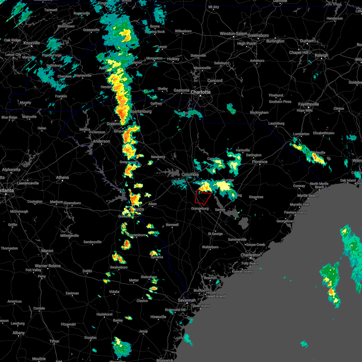 At 812 am est, severe thunderstorms were located along a line extending from 8 miles south of sandy run to near sylvania, moving east at 50 mph (radar indicated). Hazards include 60 mph wind gusts. Expect damage to trees and powerlines. locations impacted include, orangeburg, barnwell, bamberg, denmark, brookdale, blackville, st. matthews, claflin college, south carolina state university, orangeburg county airport, barnwell state park, edisto gardens, north, hilda, cameron, neeses, norway, rowesville, snelling, and olar. This includes interstate 26 between mile markers 138 and 153.