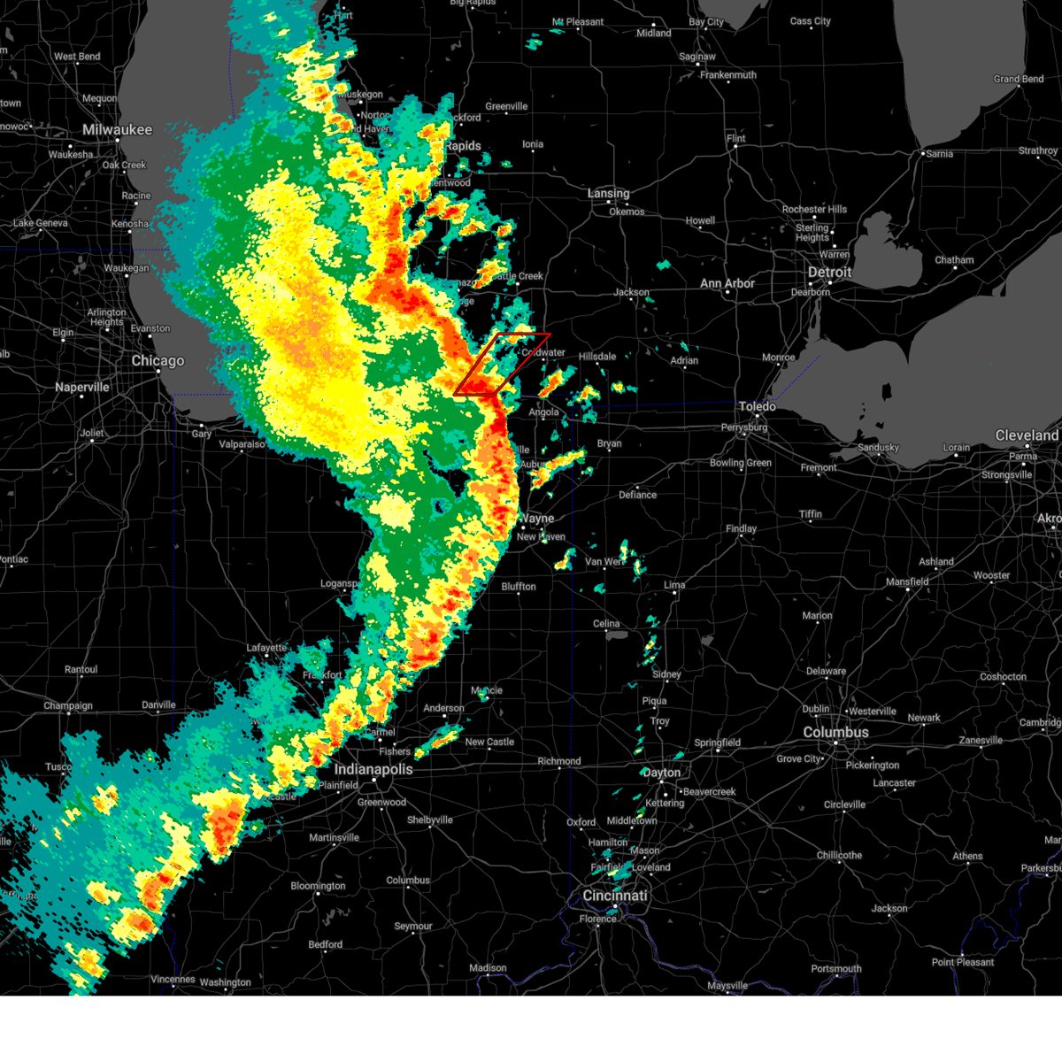 Toriwx the national weather service in northern indiana has issued a * tornado warning for, northwestern lagrange county in northeastern indiana, eastern st. joseph county in southwestern michigan, northwestern branch county in southwestern michigan, * until 545 pm edt. * at 514 pm edt, a severe thunderstorm capable of producing a tornado was located near sturgis, moving northeast at 60 mph (radar indicated rotation). Hazards include tornado. Flying debris will be dangerous to those caught without shelter. mobile homes will be damaged or destroyed. damage to roofs, windows, and vehicles will occur. tree damage is likely. this dangerous storm will be near, sturgis around 520 pm edt. colon around 530 pm edt. union city around 540 pm edt. other locations impacted by this tornadic thunderstorm include nottawa, burr oak, klinger lake, sherwood, fairfax, leonidas, fawn river, howe, findley, and matteson lake. this includes the following highways, interstate 69 in michigan near mile marker 21. Interstate 80 in indiana between mile markers 110 and 124.