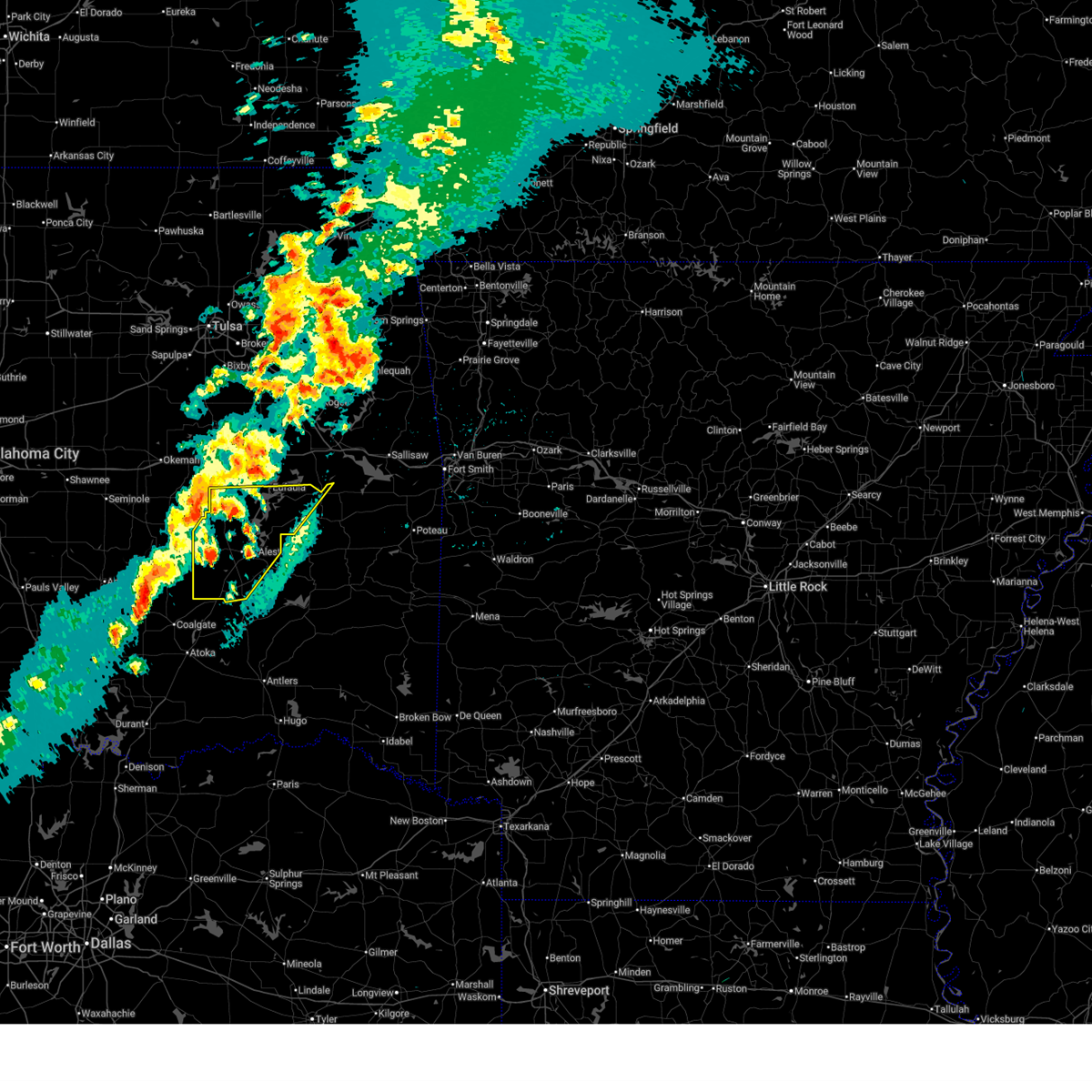 At 429 pm cst, a severe thunderstorm capable of producing a tornado was located 4 miles south of checotah, moving northeast at 45 mph (radar indicated rotation). Hazards include tornado. Flying debris will be dangerous to those caught without shelter. mobile homes will be damaged or destroyed. damage to roofs, windows, and vehicles will occur. tree damage is likely. Locations in or near the path include, muskogee, checotah, warner, oktaha, rentiesville, lake eufaula state park, keefeton, summit, onapa, this includes interstate 40 in oklahoma between mile markers 259 and 280.