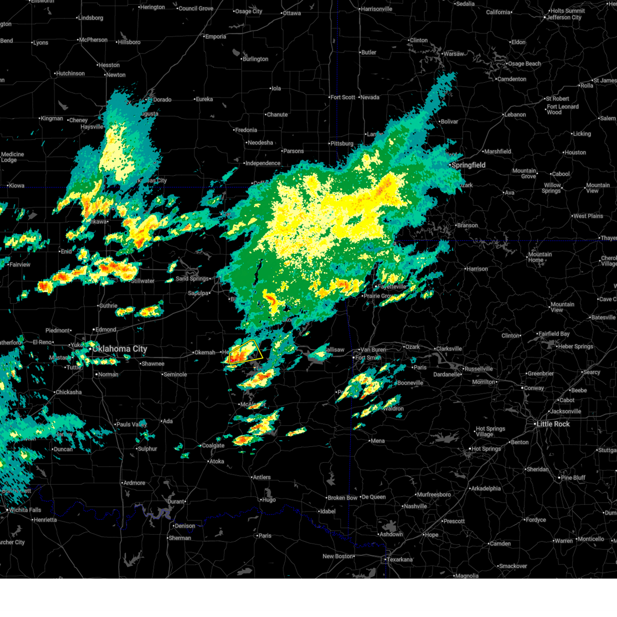 Svrtsa the national weather service in tulsa has issued a * severe thunderstorm warning for, northern mcintosh county in southeastern oklahoma, southeastern okmulgee county in northeastern oklahoma, northwestern muskogee county in east central oklahoma, * until 145 am cdt. * at 100 am cdt, a severe thunderstorm was located over grayson, moving east at 50 mph (radar indicated). Hazards include 60 mph wind gusts and half dollar size hail. Hail damage to vehicles is expected. expect wind damage to roofs, siding, and trees. Locations in or near the path include, wainwright, hoffman, okmulgee, rentiesville, hitchita, dewar, oktaha, summit, pierce, council hill, boynton, schulter, eram, checotah, morris, grayson, henryetta, muskogee, this includes interstate 40 in oklahoma between mile markers 238 and 273.
