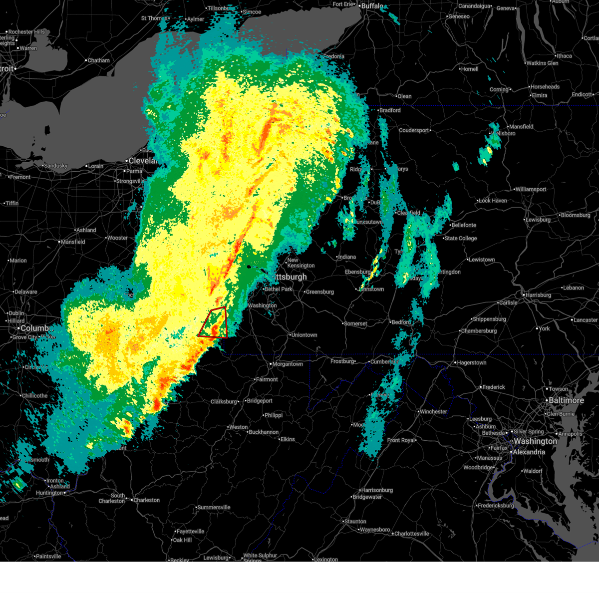 At 103 am edt, severe thunderstorms were located along a line from over franklin park to 11 miles southwest of wolfdale, or along a line from over franklin park to 10 miles east of valley grove, moving east at 50 mph (radar indicated). Hazards include 60 mph wind gusts. Expect damage to roofs, siding, and trees. Locations impacted include, pittsburgh, penn hills, mount lebanon, bethel park, ross township, wheeling, mccandless township, monroeville, moon township, mcmurray, weirton, mckeesport, washington, franklin park, canonsburg, martins ferry, warwood, wellsburg, bethlehem and west liberty.