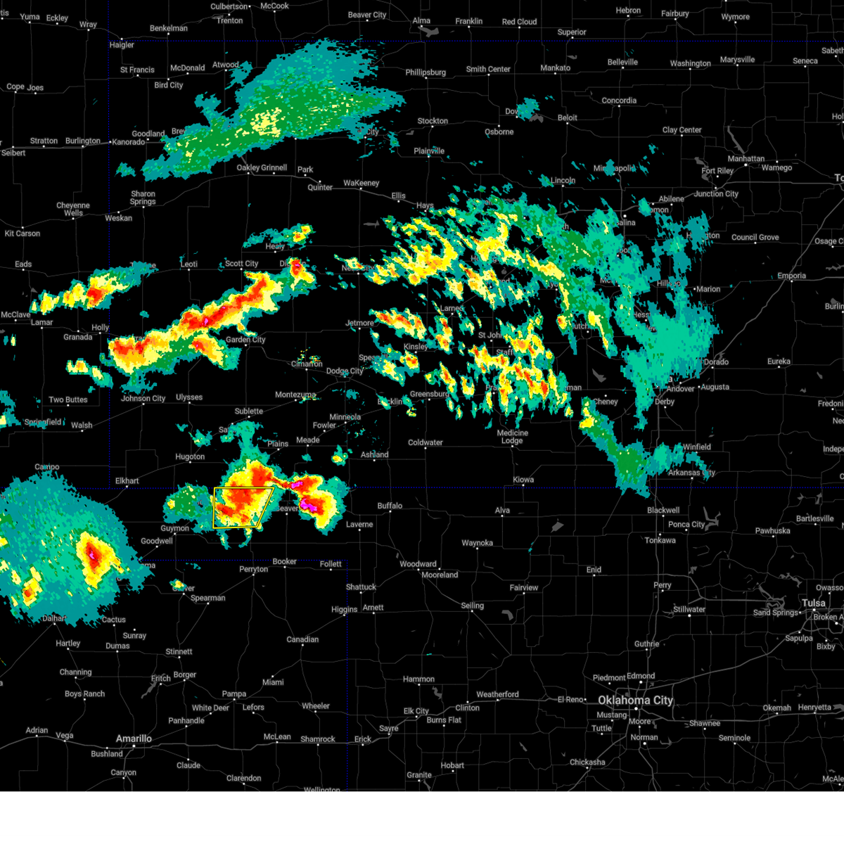 A severe thunderstorm warning remains in effect until 730 pm cdt for northeastern texas and northwestern beaver counties. at 705 pm cdt. a severe thunderstorm was located 6 miles south of liberal. moving northeast at 40 mph. hazard. 60 mph wind gusts and quarter size hail. source. Radar indicated.