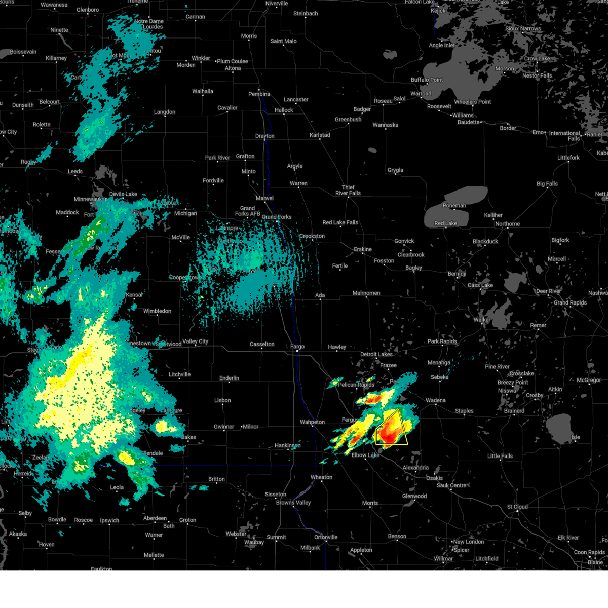 At 627 pm cdt, a severe thunderstorm capable of producing a tornado was located over elbow lake, or 22 miles south of fergus falls, moving east at 20 mph (radar indicated rotation). Hazards include tornado and ping pong ball size hail. Expect damage to mobile homes. roofs and vehicles. this dangerous storm will be near, barrett around 630 pm cdt. erdahl around 640 pm cdt. Ashby around 645 pm cdt.