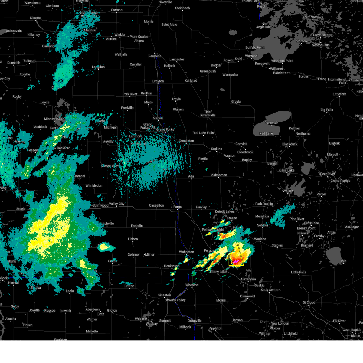 At 505 pm cdt, a severe thunderstorm capable of producing a tornado was located over western, or 10 miles southwest of fergus falls, moving east at 35 mph. this warning is for new development southwest of foxhome, where multiple reports are coming in of funnel clouds and rotating wall clouds. stor (radar indicated rotation). Hazards include tornado and quarter size hail. Expect damage to mobile homes. roofs and vehicles. this dangerous storm will be near, dalton around 515 pm cdt. underwood around 520 pm cdt. battle lake and southern ottertail lake around 525 pm cdt. clitherall and vining around 530 pm cdt. Henning and almora around 535 pm cdt.