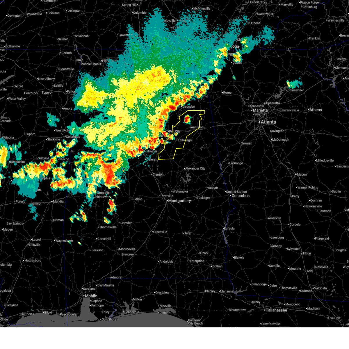 At 144 am cst, severe thunderstorms were located along a line extending from near little river falls to near honda manufacturing of alabama to near lay lake, moving east at 45 mph (radar indicated). Hazards include 70 mph wind gusts. Expect considerable tree damage. damage is likely to mobile homes, roofs, and outbuildings. Locations impacted include, anniston, oxford, talladega, sylacauga, jacksonville, childersburg, piedmont, centre, wilsonville, cedar bluff, talladega springs, cobb town, fort mcclellan, saks, little river canyon national preserve, forney, west end-cobb town, centre municipal airport, lincoln, and glencoe.