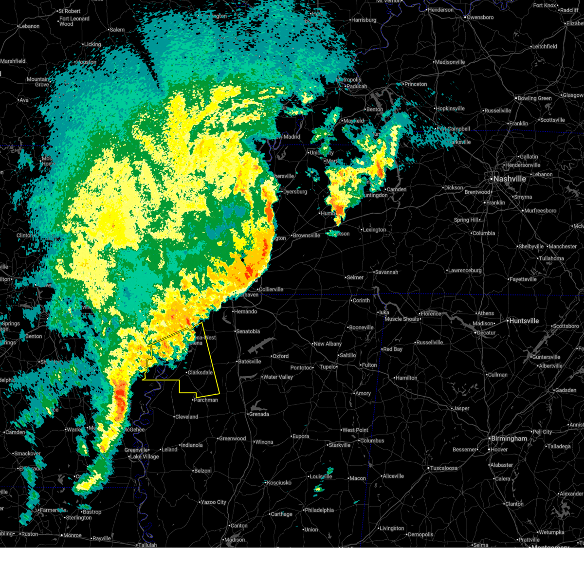 The national weather service in memphis has issued a * severe thunderstorm warning for. central tallahatchie county in northwestern mississippi. until 630 pm cdt * at 548 pm cdt. a severe thunderstorm was located over parchman. Moving east at 50 mph.