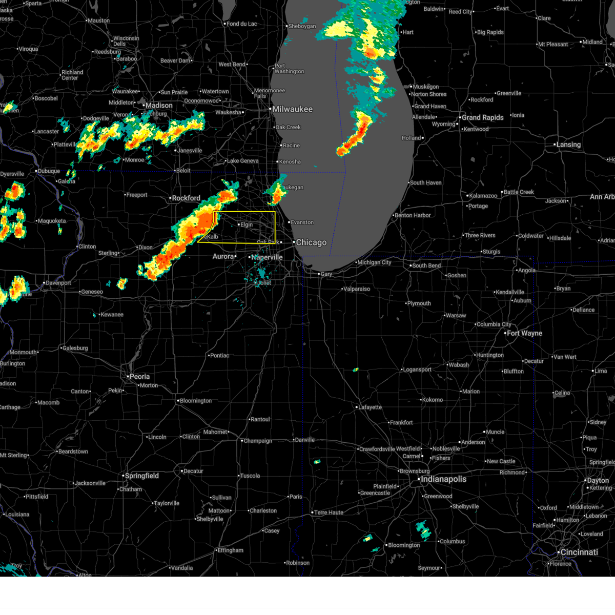 At 424 pm cdt, severe thunderstorms were located along a line extending from near gilberts to near sleepy hollow to campton hills to elburn, moving east at 30 mph (radar indicated). Hazards include 70 mph wind gusts. Expect considerable tree damage. damage is likely to mobile homes, roofs, and outbuildings. these severe storms will be near, barrington hills, carpentersville, algonquin, geneva, sleepy hollow, elburn, st. charles, valley view, elgin, and wayne around 430 pm cdt. barrington, inverness, carol stream, and roselle around 440 pm cdt. itasca, arlington heights, and addison around 450 pm cdt. wheeling, rosemont, chicago, villa park, and elmhurst around 500 pm cdt. Northbrook, glenview, northlake, franklin park, ohare airport, schiller park, park ridge, and niles around 505 pm cdt.
