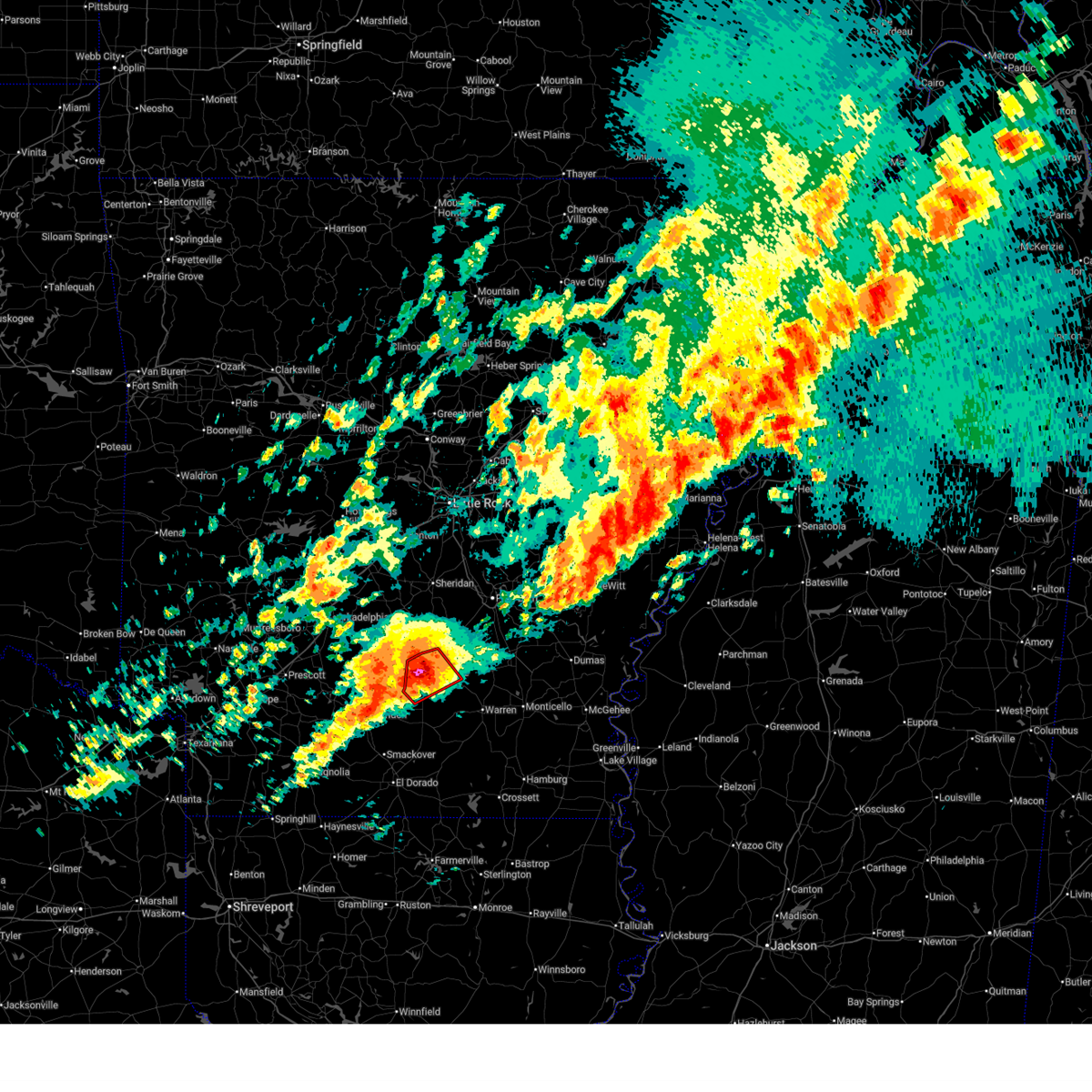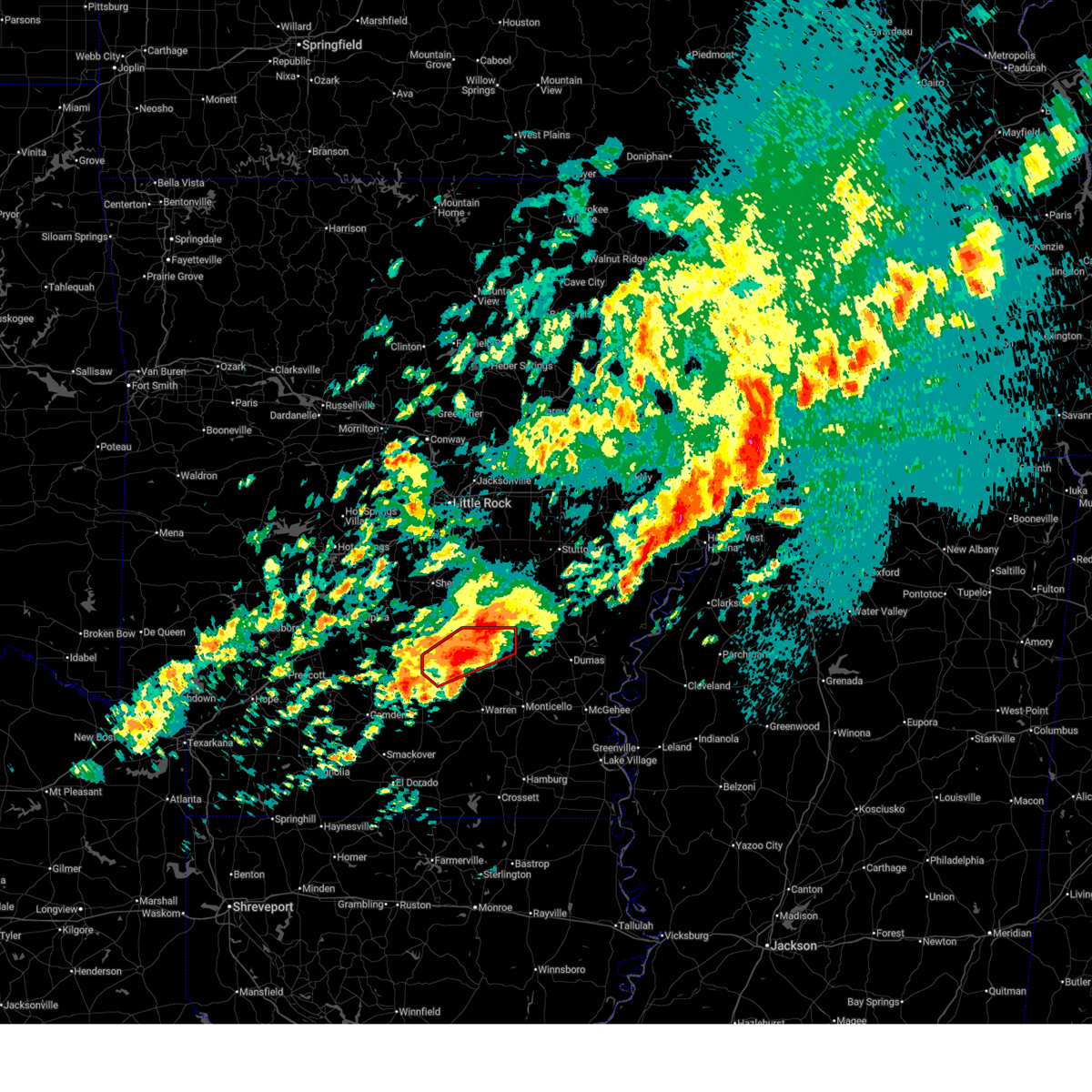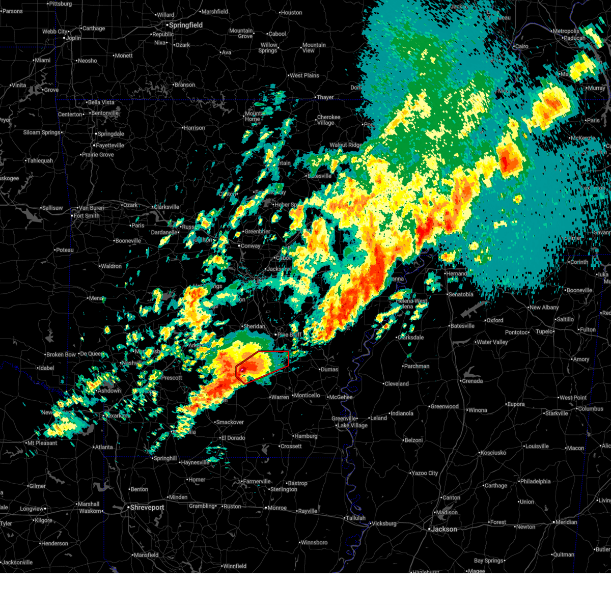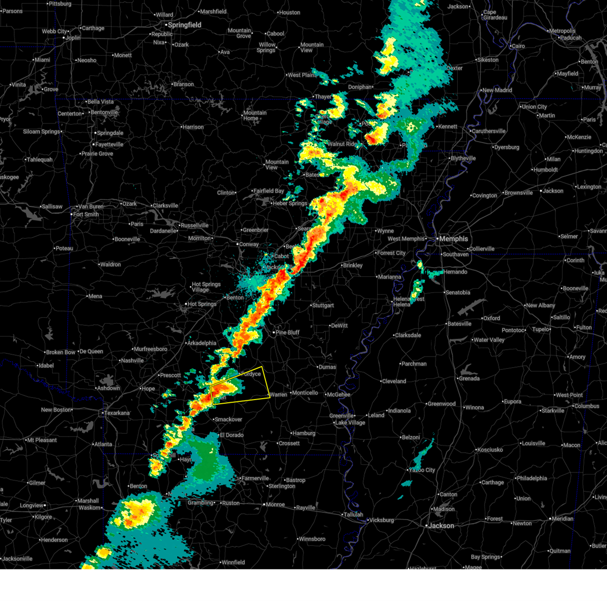 At 1239 pm cst, severe thunderstorms were located along a line extending from near kedron to near smackover, moving east at 60 mph (radar indicated). Hazards include 60 mph wind gusts and penny size hail. Expect damage to roofs, siding, and trees. Locations impacted include, warren, fordyce, star city, rison, hampton, bearden, calion, grady, kingsland, thornton, harrell, louann, whitefield, hampton municipal airport, moro bay, weeks, woodville, tipton, herbine, nebo,.