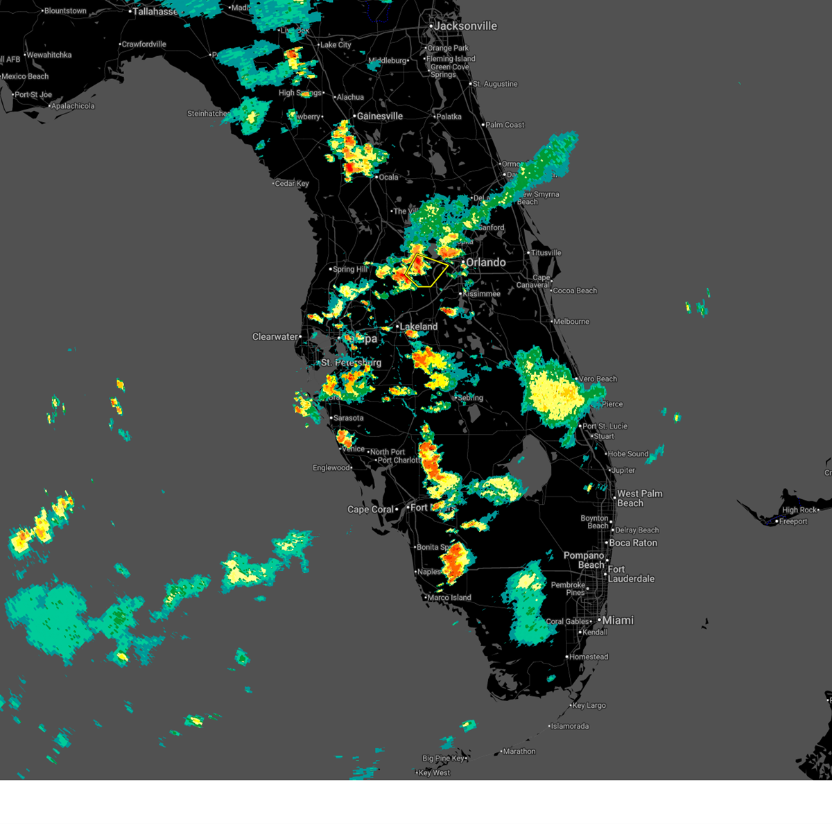 At 443 pm edt, severe thunderstorms capable of producing both tornadoes and extensive straight line wind damage were located near 8 miles west of horizon west moving east at 45 mph. an additional tornado was developing near little lake harris (radar indicated rotation). Hazards include tornado. Flying debris will be dangerous to those caught without shelter. mobile homes will be damaged or destroyed. damage to roofs, windows, and vehicles will occur. tree damage is likely. these dangerous storms will be near, ocoee, winter garden and windermere around 450 pm edt. oak ridge, orlovista and universal studios around 500 pm edt. Other locations impacted by this tornadic thunderstorm include minneola.