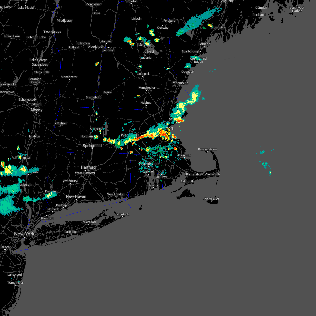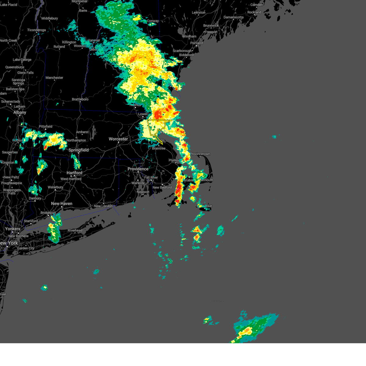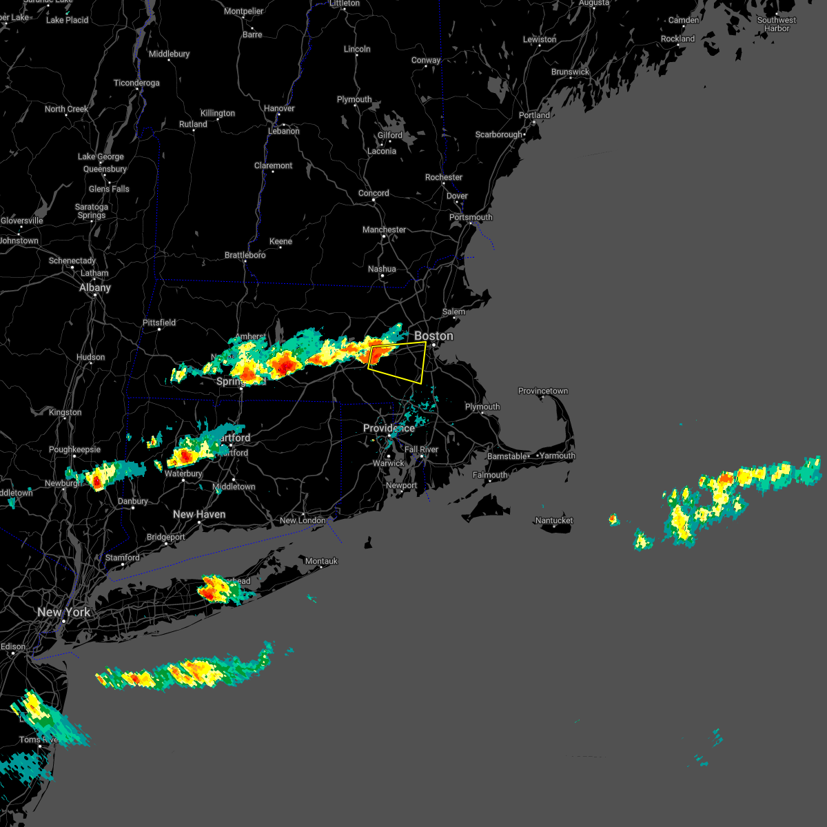 At 1143 pm edt, severe thunderstorms were located along a line extending from newton to raynham to near little compton, moving east at 55 mph (radar indicated). Hazards include 60 mph wind gusts. Expect damage to roofs, siding, and trees. Locations impacted include, boston, cambridge, new bedford, brockton, quincy, fall river, newton, brookline, plymouth, taunton, weymouth, braintree, dartmouth, randolph, needham, norwood, wellesley, milton, stoughton, and bridgewater.