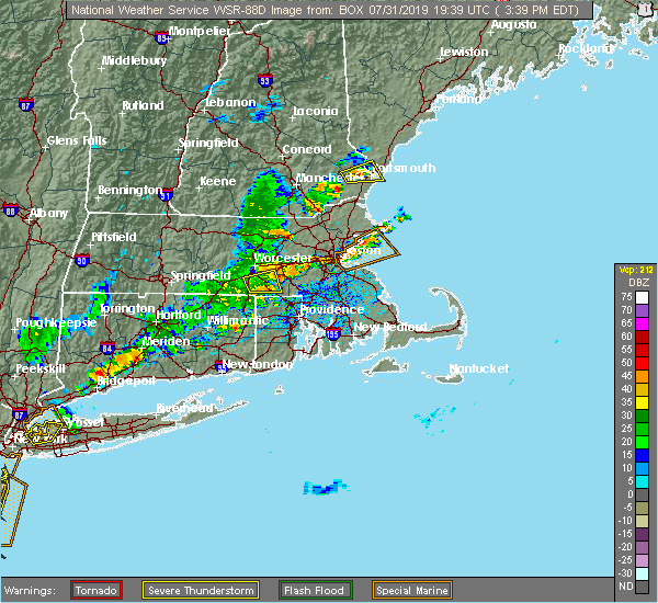 Svrbox the national weather service in boston/norton has issued a * severe thunderstorm warning for, southeastern essex county in northeastern massachusetts, southeastern worcester county in central massachusetts, norfolk county in eastern massachusetts, suffolk county in eastern massachusetts, southeastern middlesex county in northeastern massachusetts, northwestern plymouth county in southeastern massachusetts, * until 215 pm edt. * at 122 pm edt, severe thunderstorms were located along a line extending from woburn to wellesley to medway, moving east at 35 mph (radar indicated). Hazards include 60 mph wind gusts. expect damage to roofs, siding, and trees