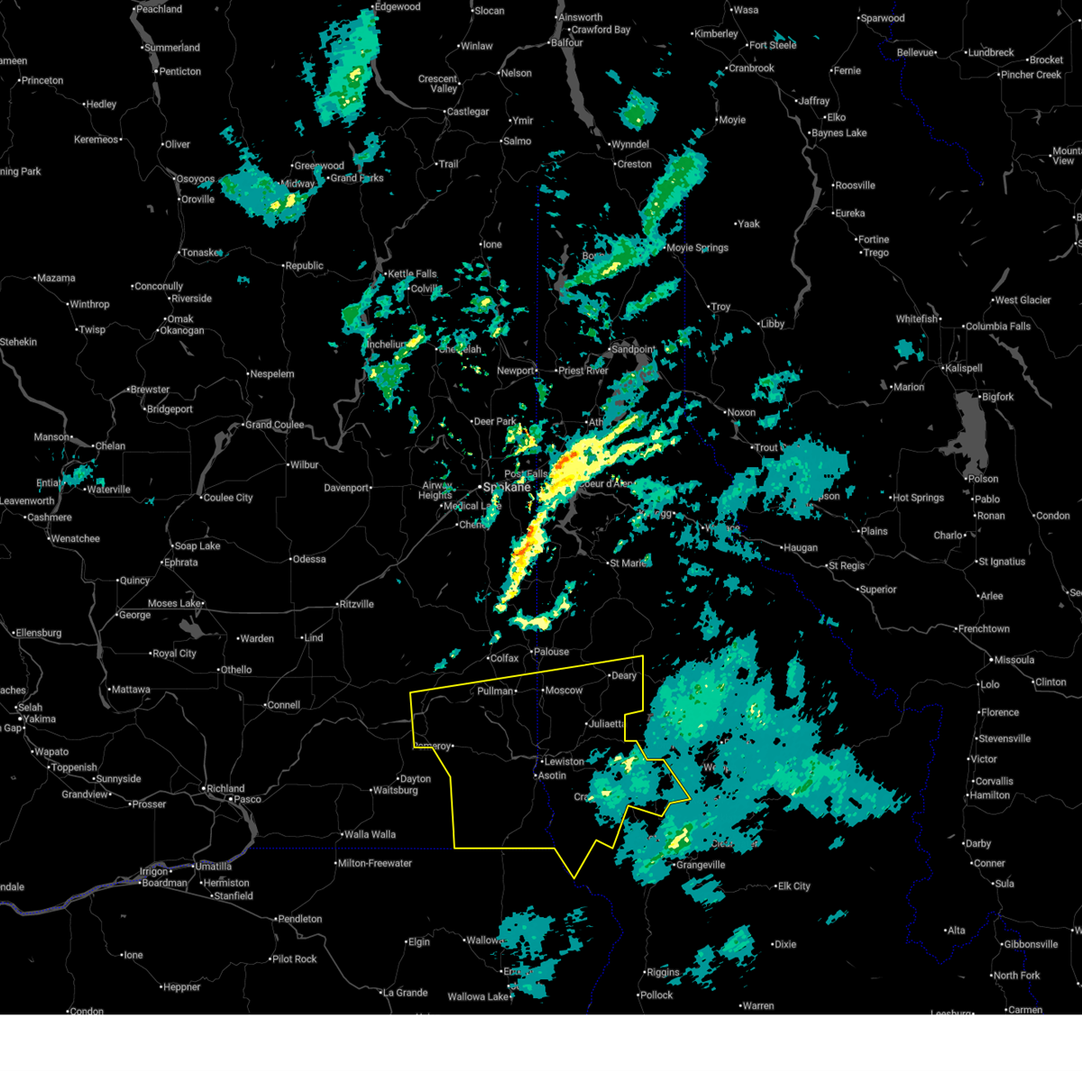 At 442 pm pdt, a severe thunderstorm was located over lapwai, moving northeast at 30 mph (radar indicated). Hazards include 60 mph wind gusts and penny size hail. Expect damage to roofs, siding, and trees. locations impacted include, lewiston, clarkston, lapwai, genesee, juliaetta, craigmont, culdesac, west clarkston-highland, reubens, spalding, and gifford. this includes the following highways, u. s. highway 95 in idaho between mile markers 280 and 330. u. s. highway 12 in idaho between mile markers 0 and 23. u. s. highway 12 in washington between mile markers 433 and 434. u. s. Highway 195 in washington between mile markers 0 and 1.